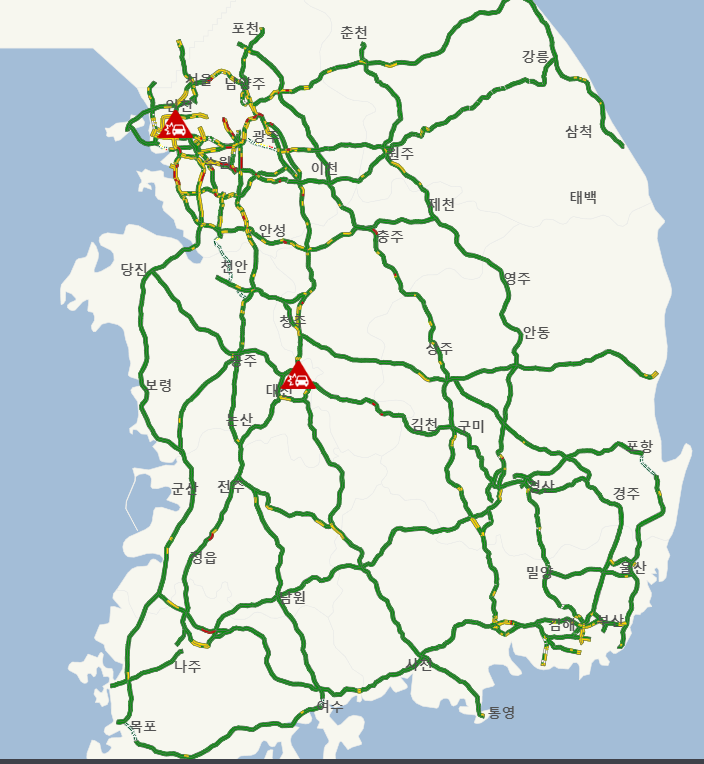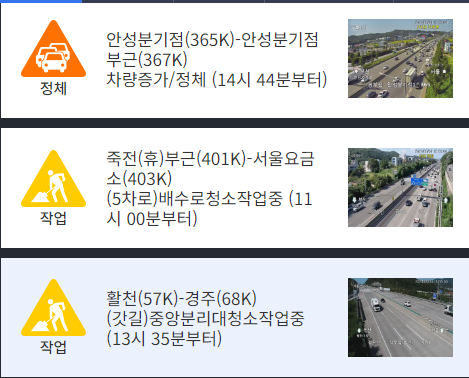 이곳에서는 고속도로뿐만 아니라 일반 국도의 교통 흐름도 확인할 수 있습니다.