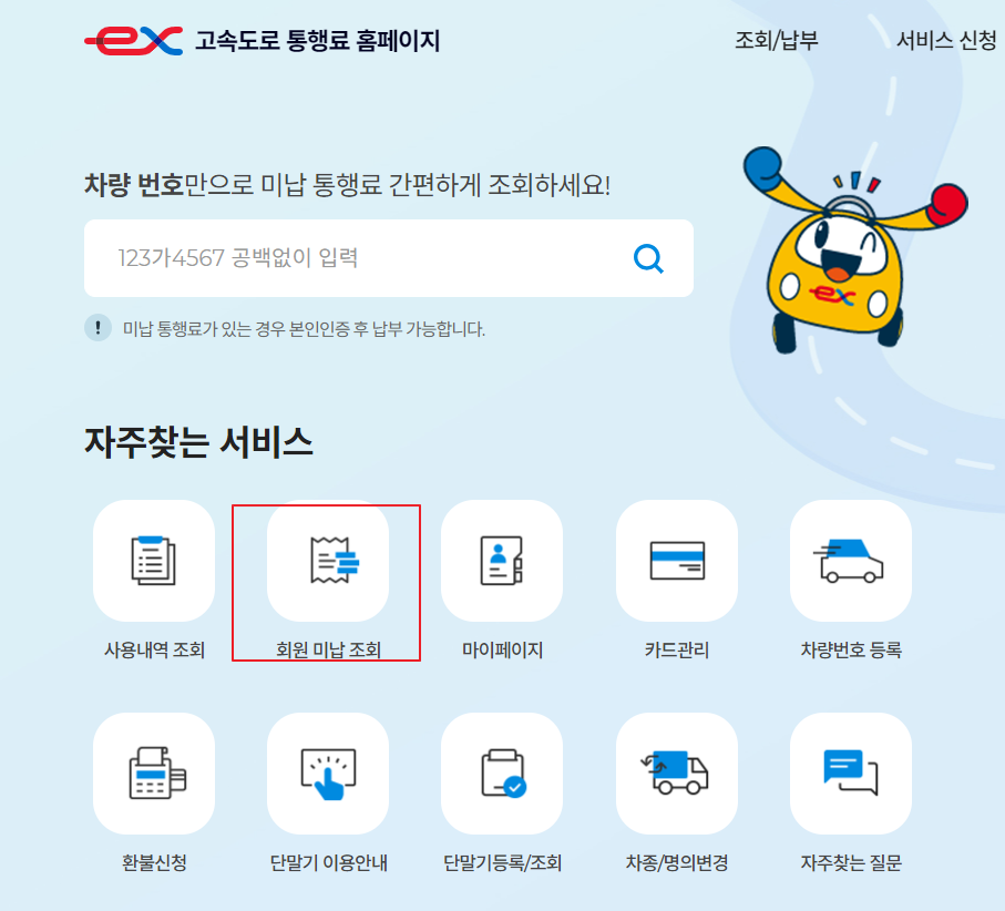 고속도로 통행료 미납조회