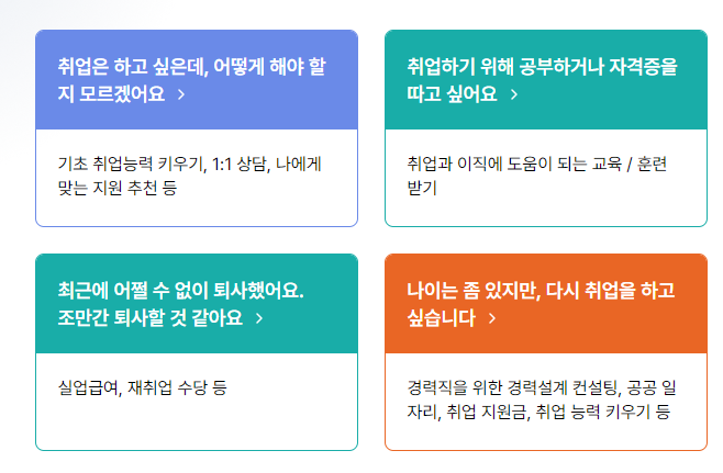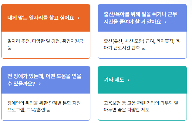고용노동부 상담 서비스: 근로 조건이나 고용 관련 문제에 대해 상담을 받을 수 있는 서비스도 제공됩니다.