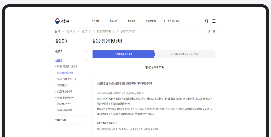 실업 상태임을 인정받기 위해 구직신청서를 작성하고, 고용24 홈페이지에 제출해야 합니다. 본인이 구직활동을 하고 있음을 증명합니다.