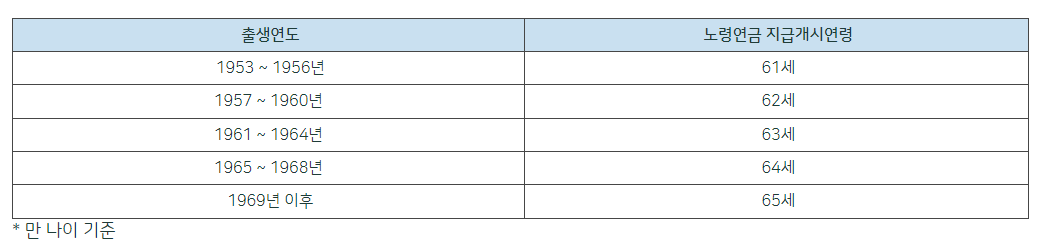 연금 지급 개시 연령은 다음과 같이 점차 상승하고 있습니다.
