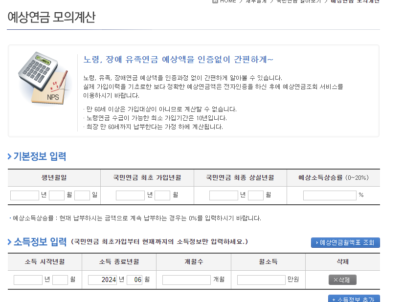 예상 연금액 조회 방법은 국민연금공단 홈페이지에서 전자 민원 서비스에서 개인 서비스 > 예상 연금액 조회를 선택하고 로그인합니다.