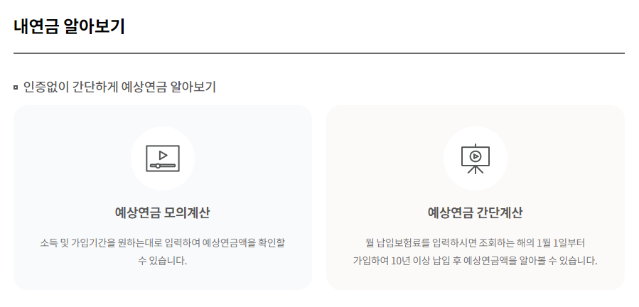 로그인 후, 본인의 가입 내역과 예상 연금액을 확인할 수 있습니다.