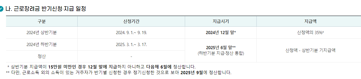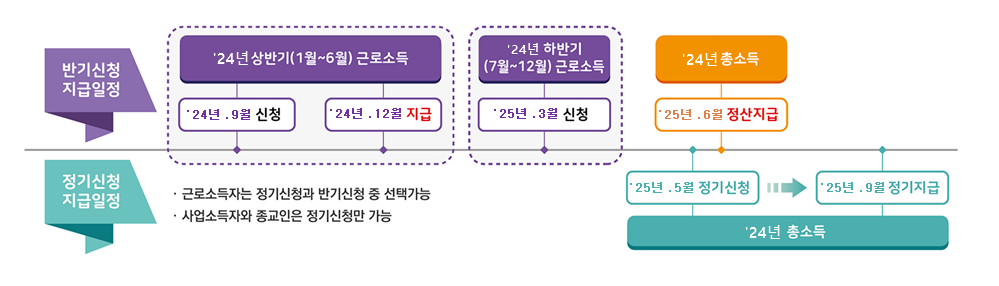 반기 신청은 근로소득자에 한해 9월에 가능합니다. 이때는 2023년 하반기 소득에 대해 신청하며, 신청 기간은 9월 1일부터 16일까지로 제한되어 있습니다.