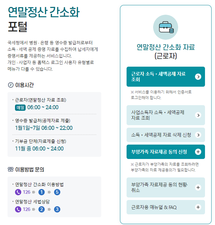 필요한 서류 제출과 공제항목 입력 등을 쉽게 할 수 있도록 안내합니다.