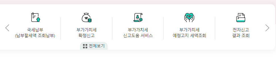 필요한 세금 서비스를 선택합니다. 각 서비스는 사용자의 필요에 따라 쉽게 선택할 수 있도록 카테고리별로 나누어져 있습니다.