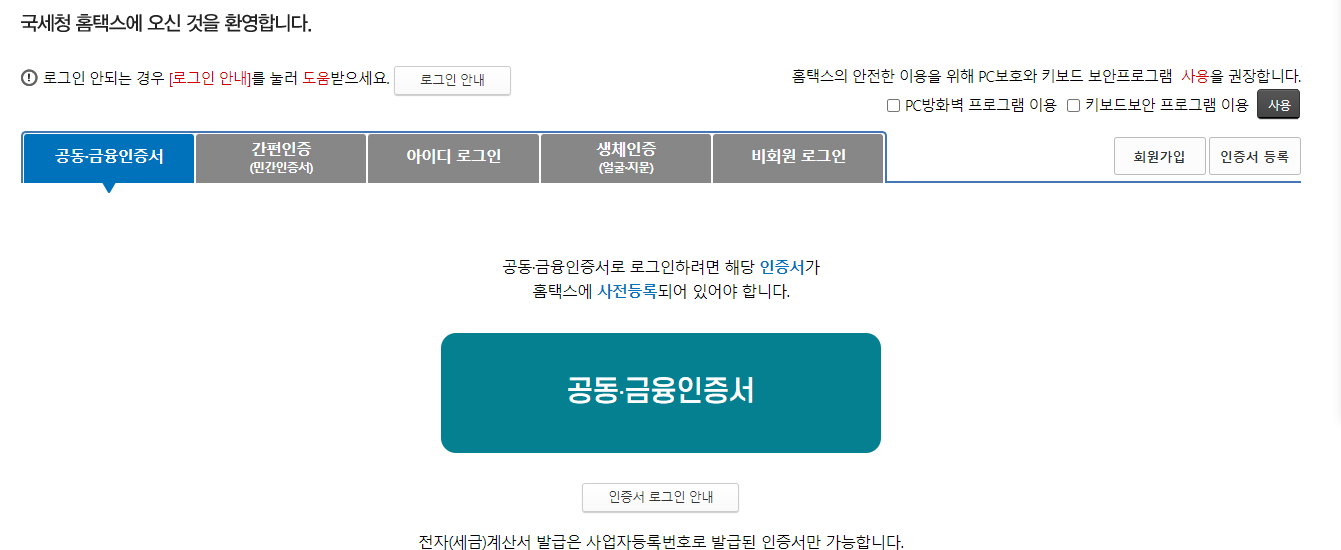 회원가입을 완료한 후, 로그인합니다. 로그인 후 메인 화면에서 다양한 세금 서비스를 이용할 수 있습니다.