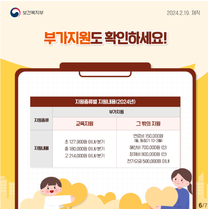 2024년에는 지원 금액이 인상되어 1인 가구 기준으로 713,100원을, 4인 가구 기준으로 1,833,500원을 지원받을 수 있습니다.