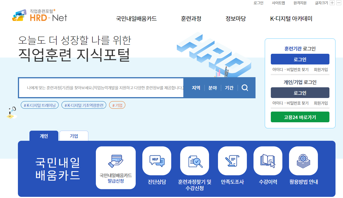 국민내일 배움 카드는 여러분의 미래를 위한 중요한 투자입니다. 직업 훈련을 통해 새로운 기술을 배우고, 더 나은 취업 기회를 잡으세요. 여러분의 성공을 응원합니다.