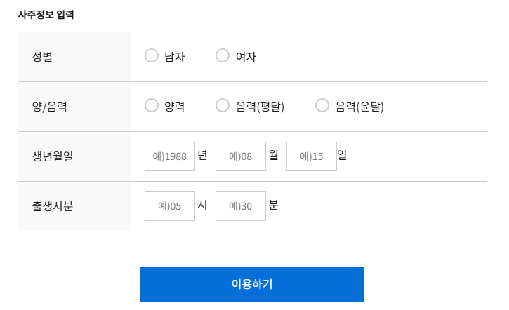 팁: 출생 시간을 정확히 모를 경우, 대략적인 시간대를 입력하더라도 충분히 신뢰할 수 있는 결과를 얻을 수 있습니다.
