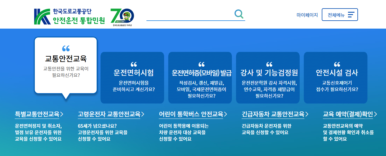 도로교통공단의 안전운전 통합민원 서비스는 운전자들이 손쉽게 다양한 민원 업무를 처리할 수 있도록 도와주는 편리한 온라인 홈페이지입니다.