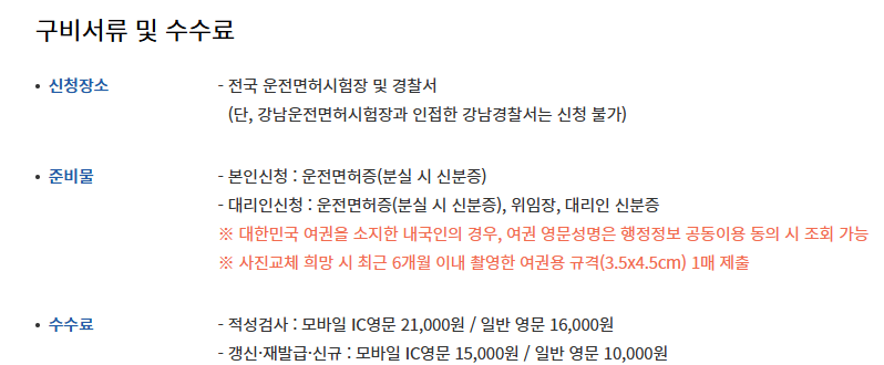 운전면허 발급 및 갱신: 신규 운전면허 취득이나 기존 면허 갱신을 신청할 수 있습니다. 또한, 갱신 시기를 놓친 사람들을 위한 면허 재발급 신청도 가능합니다.