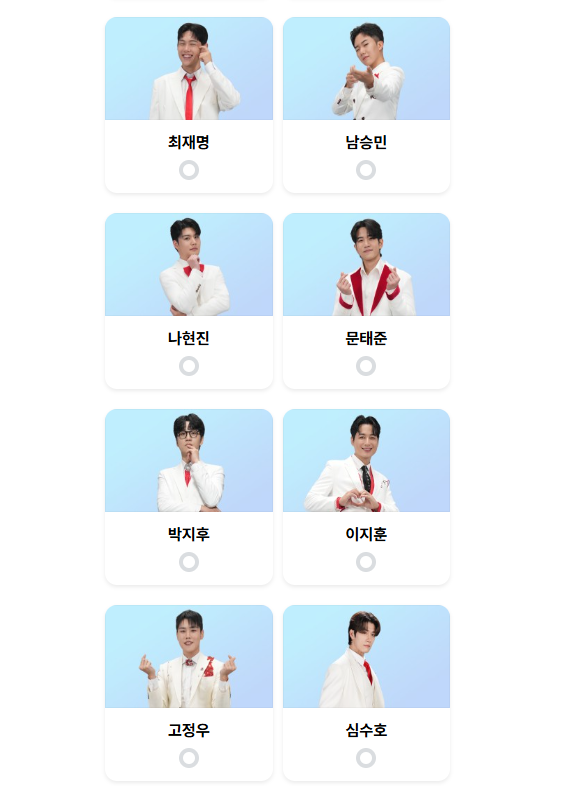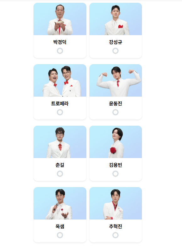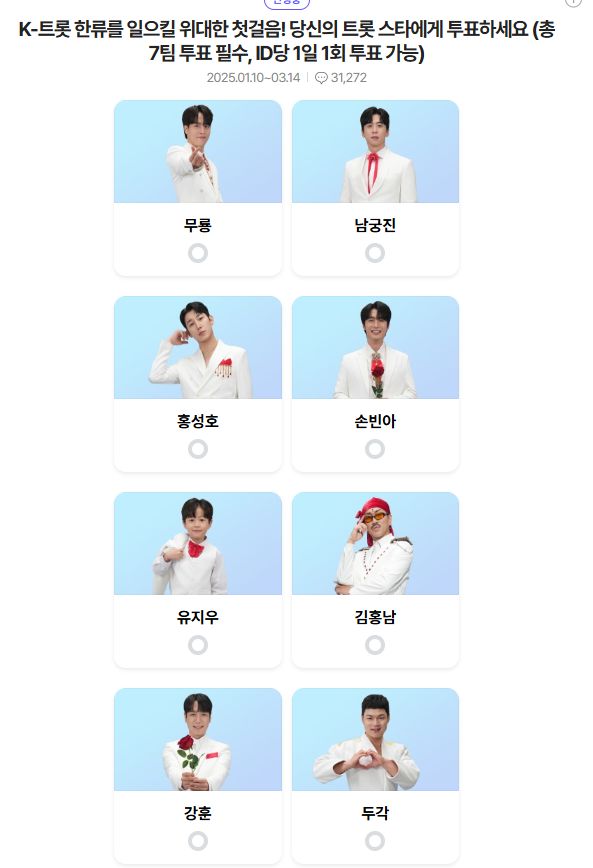 3. 트롯스타 7명을 선택 후 투표 버튼을 누릅니다.