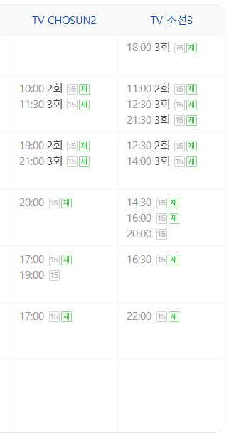 TV조선: 본방송 이틀 후, 토요일 낮 12시