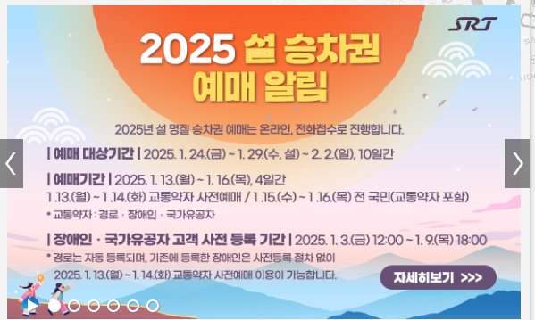 이번 설날에는 SRT를 통해 빠르고 편안한 귀성길을 만들어 보세요. 가족과 함께 따뜻하고 행복한 명절 보내시길 바랍니다.