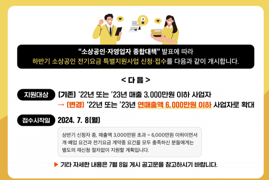 소상공인 전기요금 특별지원을 통해 많은 소상공인들이 경제적 어려움을 극복하고 사업을 지속적으로 운영할 수 있기를 바랍니다.