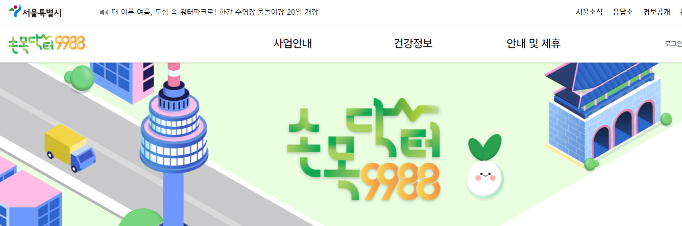 서울시 공식 홈페이지에서 '손목닥터 9988' 프로그램으로 이동합니다.