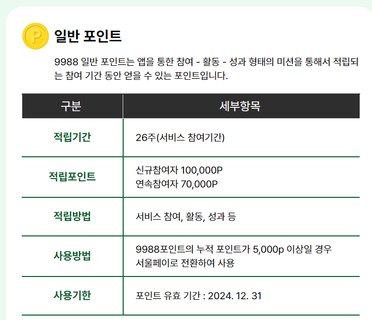 포인트 적립기간은 26주(서비스 참여기간) 신규 참여자 10만 포인트, 연속참여자 7만 포인트