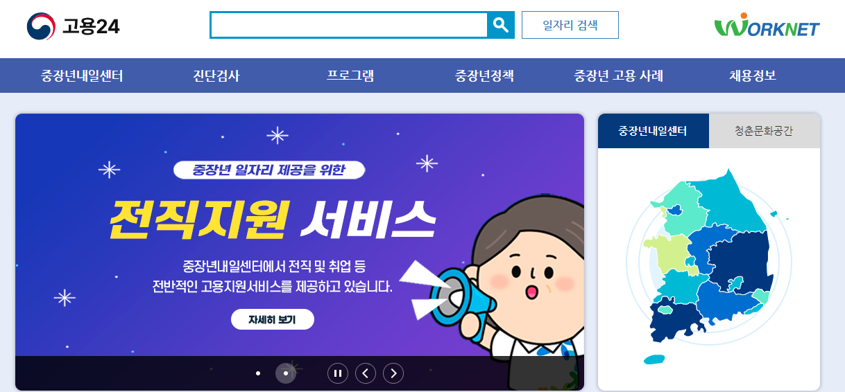 '중장년 워크넷' 홈페이지에 접속합니다.