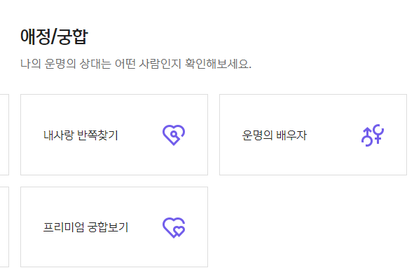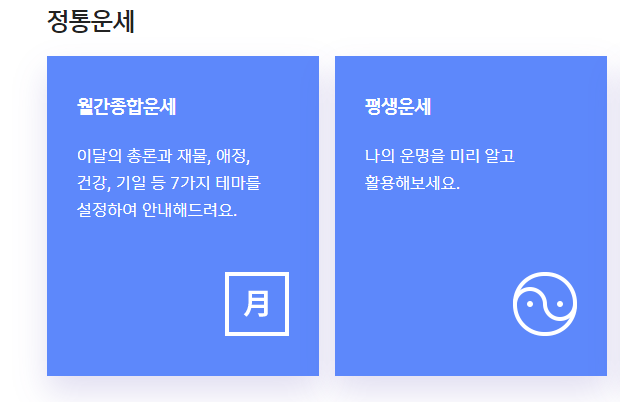 2. 운세 카테고리 선택(오늘의 운세, 사주, 타로 등)