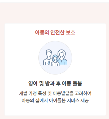 이 서비스는 아동의 안전과 복지를 최우선으로 하며, 부모의 양육 부담을 덜어줌으로써 가족 구성원의 삶의 질을 높이는 데 목적이 있습니다.