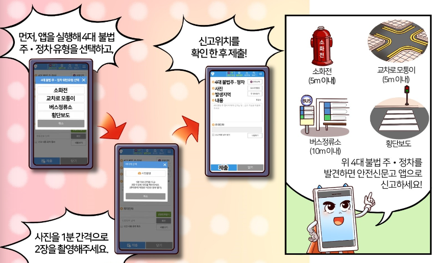안전신문고 앱을 통해 불법 주정차 차량을 신고하는 과정은 매우 간단합니다. 아래 단계별로 자세히 설명드리겠습니다.