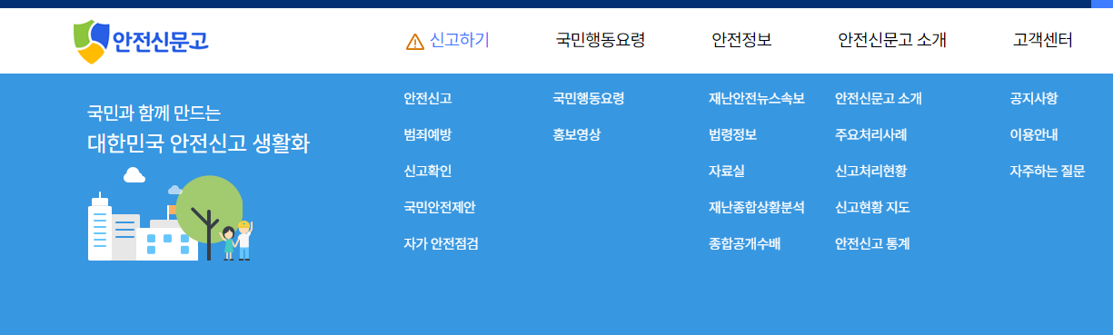 안전신문고 홈페이지 주요 기능