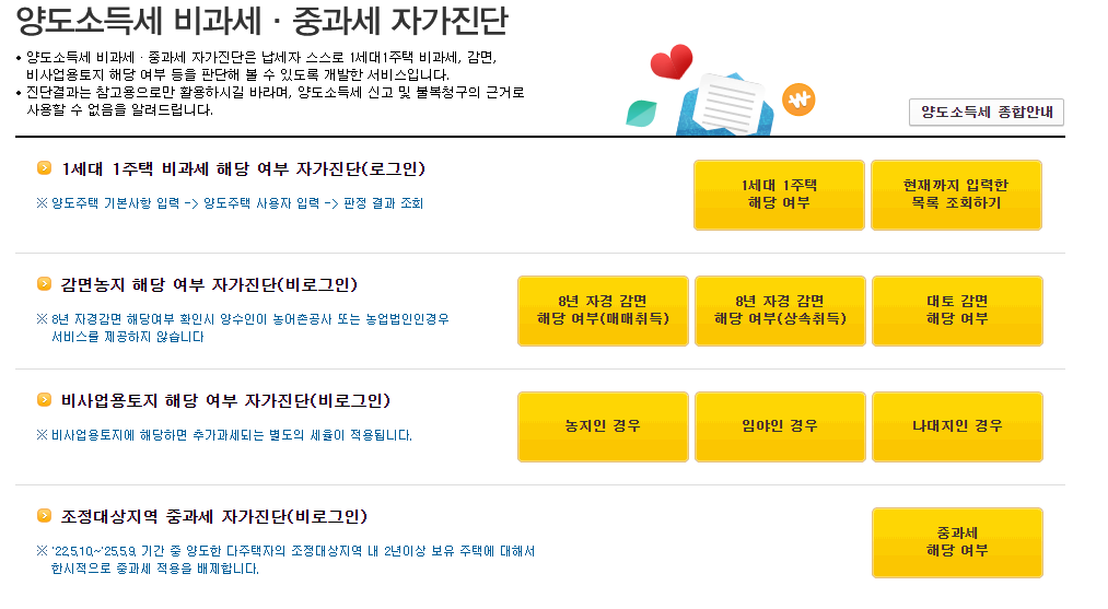 양도세 관련 더 자세한 정보는 국세청 홈택스 홈페이지에서 확인할 수 있습니다. 언제나 정확한 정보를 바탕으로 현명한 부동산 거래를 하시길 바랍니다.