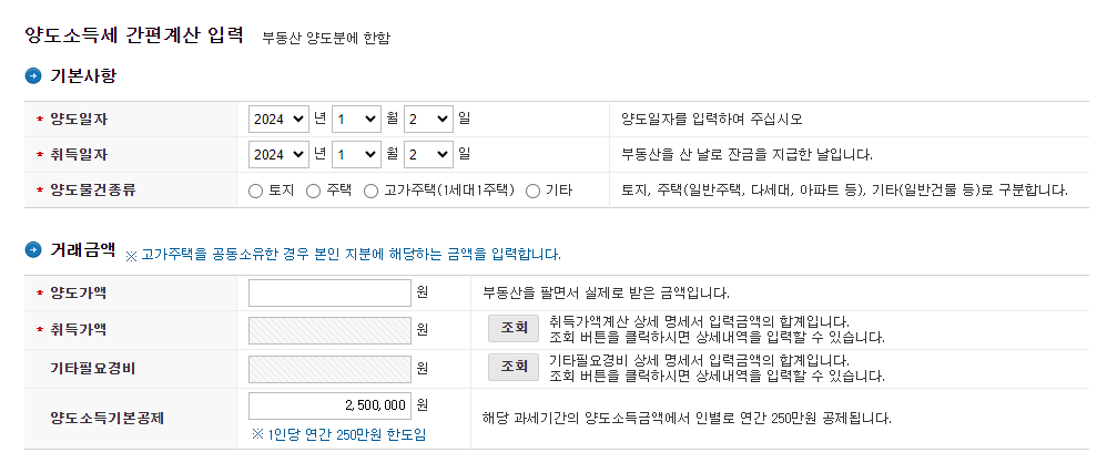 양도소득세 자동계산