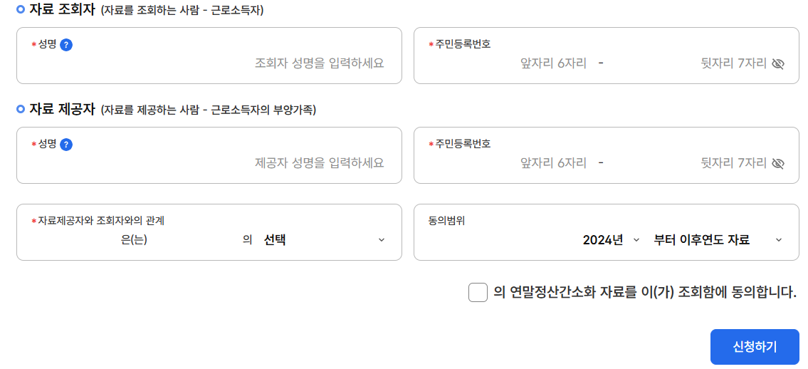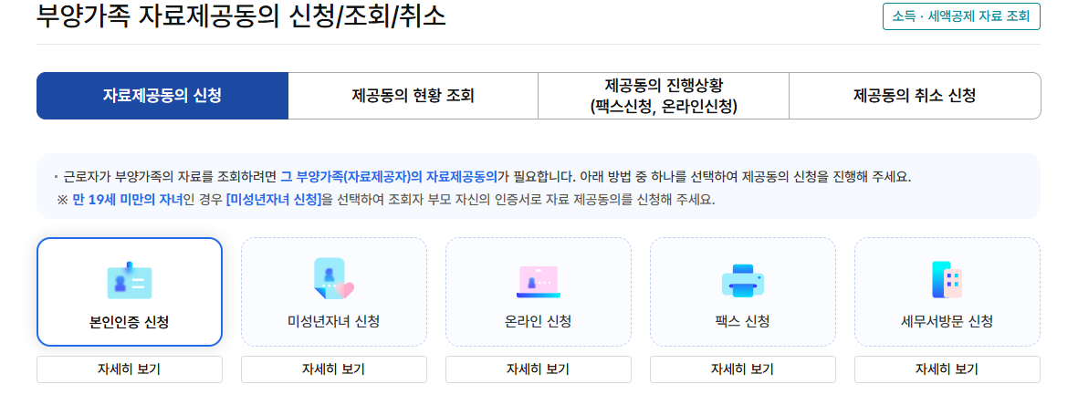 4. 부양가족 자료제공 동의 신청/조회/취소