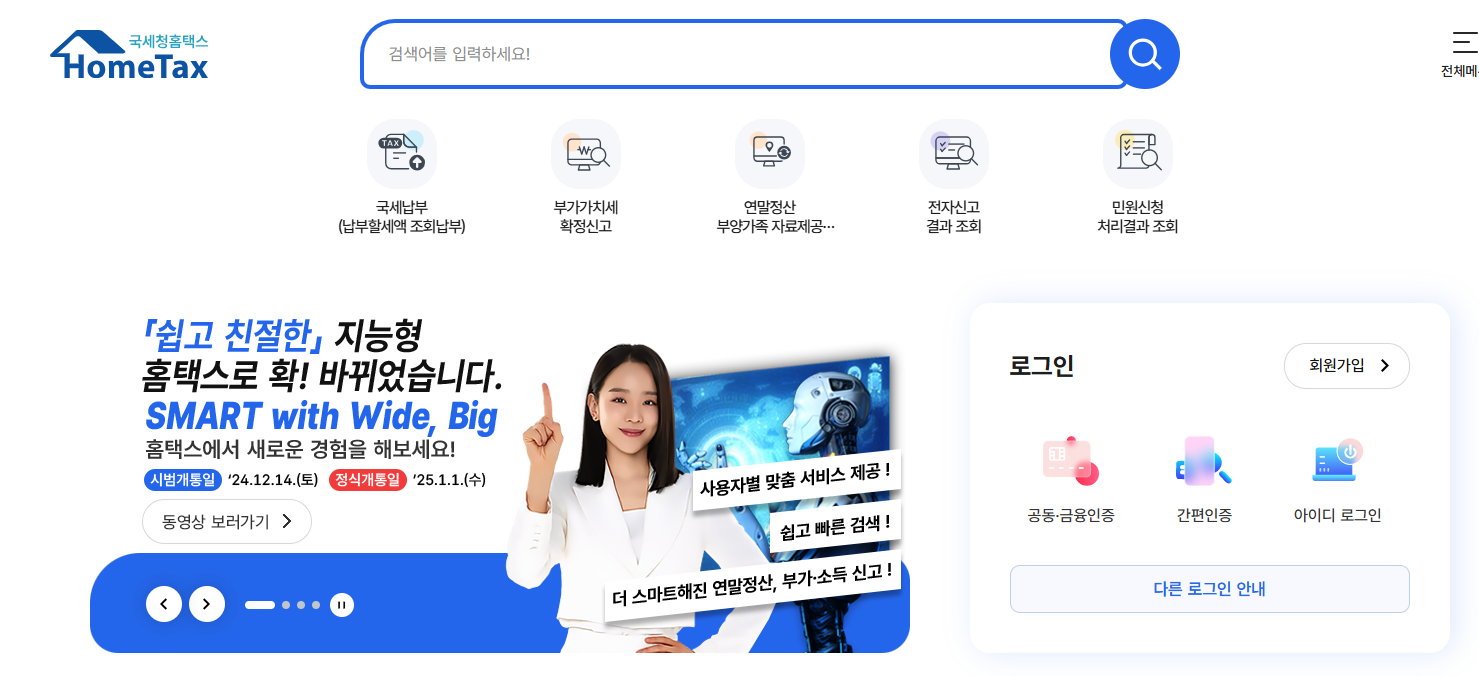 등록 방법을 확인해 보니, 홈택스 화면이 변경되었는데 이전 보다 메뉴들이 정리되고 가독성 있게 변경된 것 같습니다.