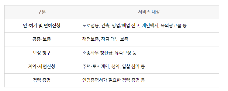 - 용도 : 인허가 용도, 공증 보증 및 경력 증명이나 면허 신청용, 보상 청구, 입찰, 주택 토지계약, 청약 보조사업 등 일반용 (부동산, 금융기관, 법원 제출용은 불가)