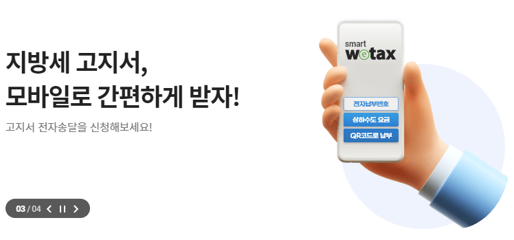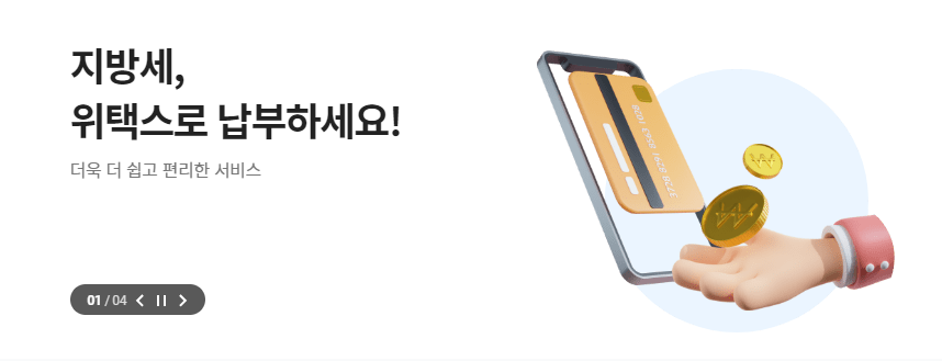 위택스 사이트에서는 전국 지방세 신고 및 납부 서비스를 제공합니다. 위택스 메인 화면에서 '지방세 납부' 메뉴를 클릭해 자동차세를 납부할 수 있습니다.