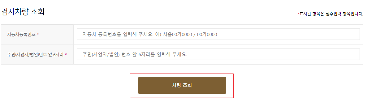 3. 자신의 자동차 등록번호와 주민등록번호 앞 6자리를 입력한 후 검색을 눌러줍니다.