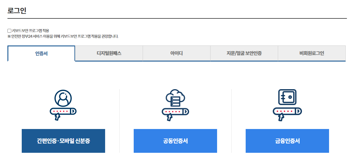 전자증명서 발급: 공인인증서 없이도 간편하게 전자증명서를 발급받을 수 있습니다.