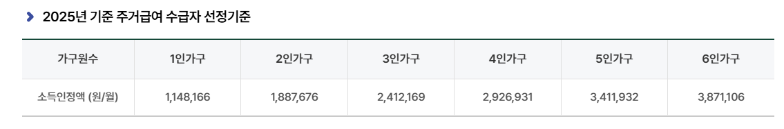✔ 2025년 기준 중위소득 48% 이하 가구 소득 기준