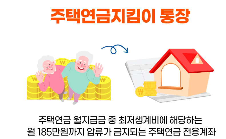 주택연금 월지급금 중 최제생계비에 해당하는 금액(185만 원)까지만 입금이 가능하고, 입금된 그액에 대한 압류가 금지되어 보다 안정적인 주택연금 수령을 가능케한 주택연금 전용계좌입니다.