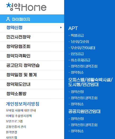 청약홈 접속: 청약홈 웹사이트 또는 모바일 앱을 통해 접속합니다.
