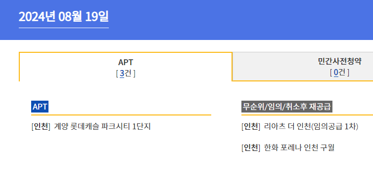 2. 청약홈 홈페이지 일정 조회