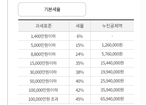 환산산출세액을 산출 위에서 구한 과세표준액에 세율을 곱하고 누진공제를 빼줍니다.