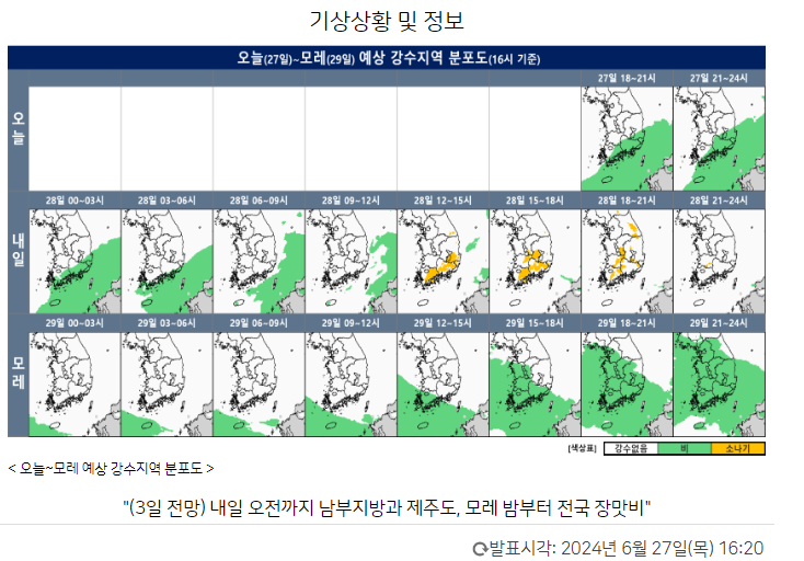 오늘은 2024년 장마 예상기간과 이에 따른 대비방법에 대해 알아보겠습니다. 올해 장마는 동남아시아의 스콜과 비슷한 도깨비 장마 형태로 예상되고 있습니다.