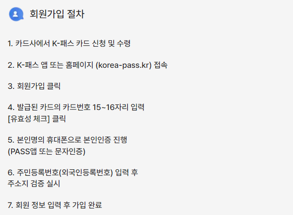 신규 신청자는 K패스 카드 공식 웹사이트에서 신청서를 작성하고 필요한 서류를 제출하면 됩니다. 제출 서류에는 신분증 사본과 주소지 확인 서류가 포함됩니다.